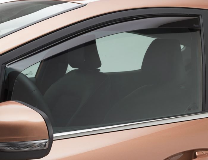 These Genuine Ford Grand Fiesta 5 door 2017> Front Door Wind Deflectors are supplied as a pair and finished in Dark Grey / Black.