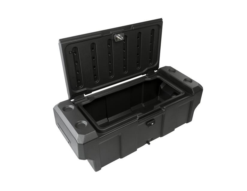 Full width load bed mounted storage box, ideal for safely storing tools and equipment. Comes with 2 removable trays for storing small items.